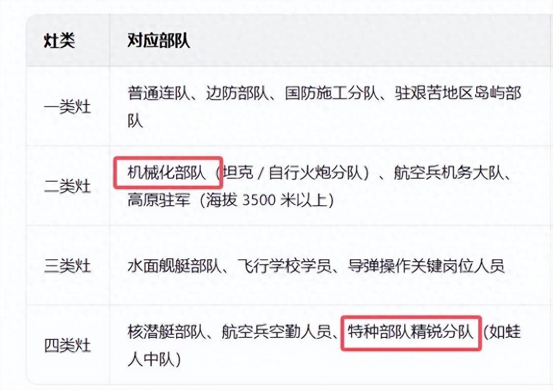 首先,我们要先搞明白部队的伙食是如何划分的,我军现在一直都是划分了四个标准的,从这个标准的划分,我们大体上就是能看出来的,702团属于机械化部队,属于二灶类,而A大队,人家属于特种部队,因此,从伙食待遇上来说,应该被划分到了四灶类了,不过,部队里面高伙食标准,也就意味着高压力。